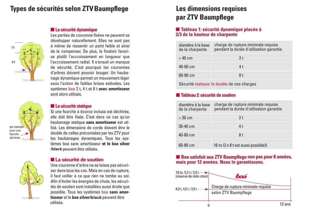 La durée de vie constructeur d’un hauban est généralement de 8 ans, mais elle ne tient pas compte de l’environnement spécifique de l’arbre (très venteux, humide, sec…) ni de situation spécifique du sujet (déchirement, casse, masse, forme…) c’est pourquoi il est important dans la mesure du possible de confier la pause ET le suivi à la même entreprise.