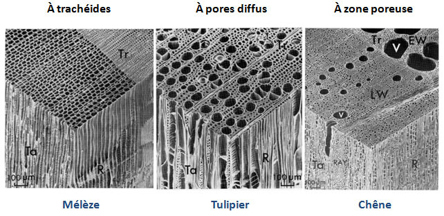 Quelques essences d’arbres à fibres-trachéides
