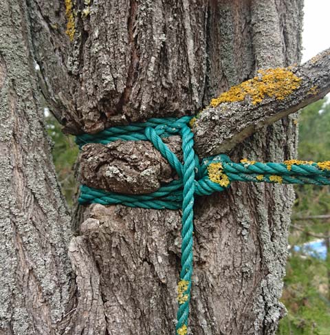 L’arbre ne pouvant pas couper cette corde, il va la recouvrir en s’élargissant et progressivement l’absorber.