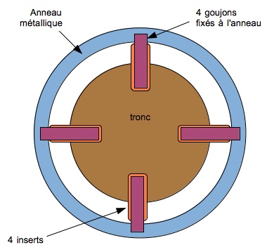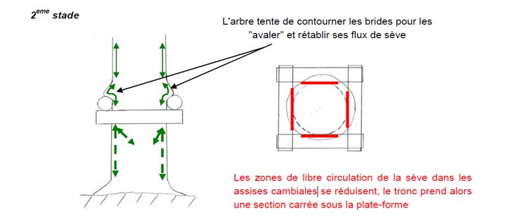 Le perçage peut être partiel avec par exemple un simple écrou qui stabilise un étai qui joue un rôle de pression sur le rhytidome.